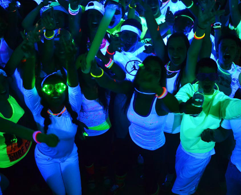 We bring in the black-lights to make the room and students GLOW. Add even more fun by having the students use black light paint on their clothes to really add on the colors. Ask more about this fun add-on today when booking!